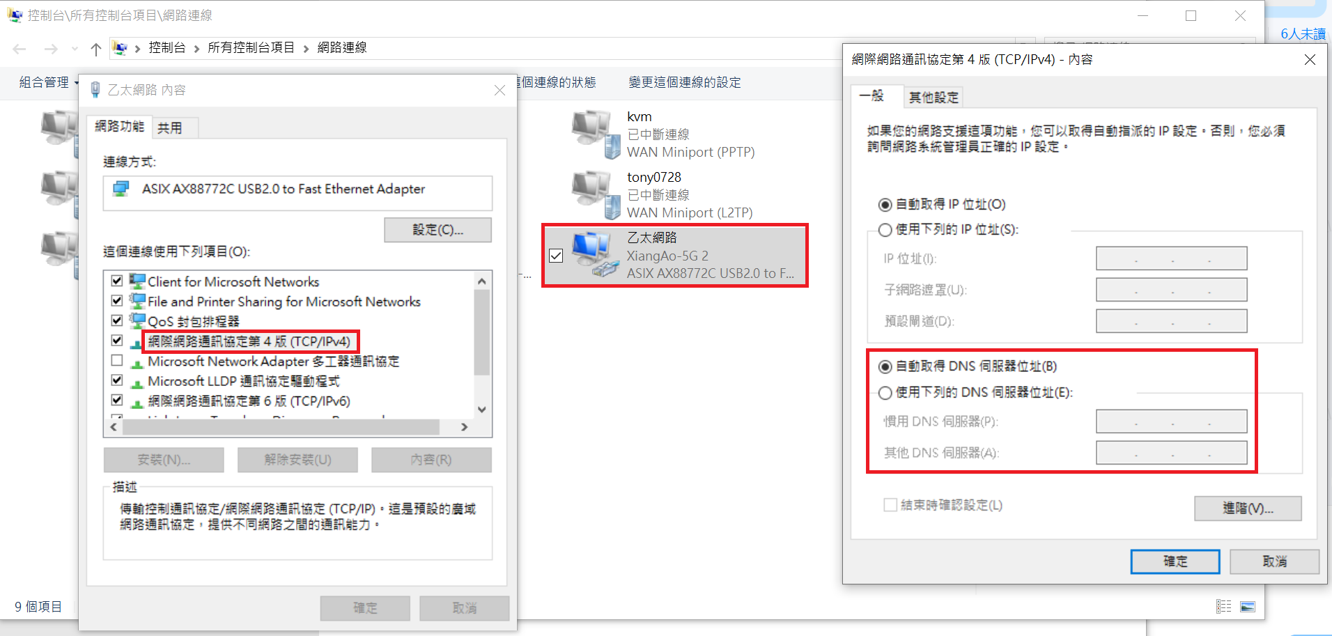 須將您DNS指派到外網(國外)server,並刪除內網(國內)DNS server,如有需要請記住原本的DNS server