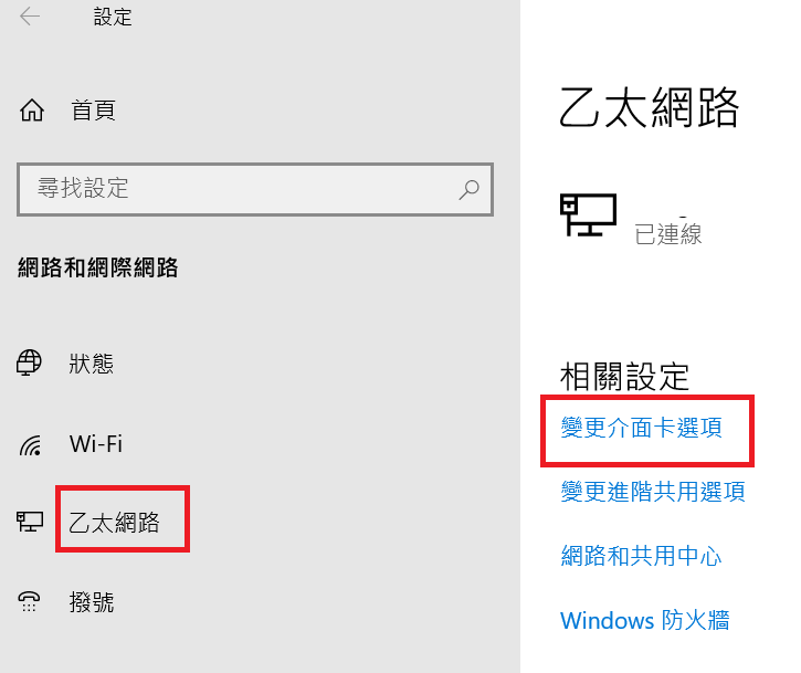 Windows10 設定DNS可以到 設定>網路和網際網路>乙太網路>變更介面卡>內容>IPv4